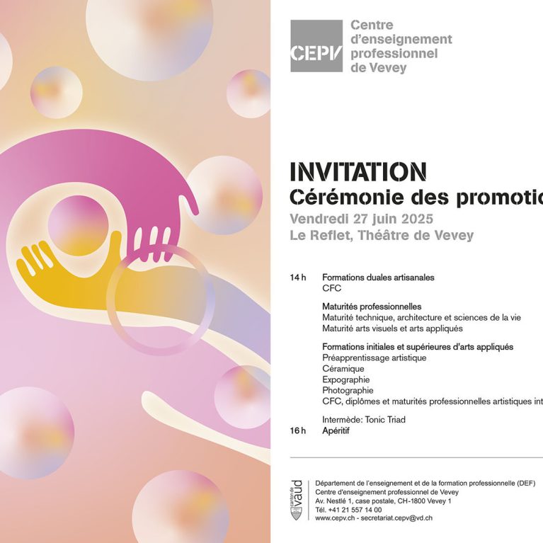 Vendredi 28juin 2024 Le Reflet,Théâtre de Vevey 14h00 Formations duales artisanales CFC Maturités professionnelles Maturite technique. architecture et sciences de la vie Maturité arts visuels[…]