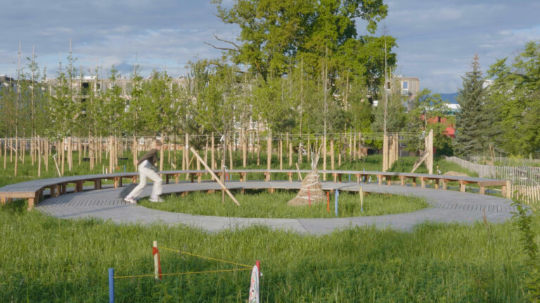 Le résultat est une collection de plans simples qui, ensemble, forment une mosaïque vivante qui cherche, au-delà du visible, à percevoir les vibrations d’un lieu, établir des dialogues silencieux entre l’ombre et la lumière, à montrer la poésie absurde d’un moment d’arrêt. L’espace urbain du quartier des Nations à Genève, que l’atelier ALICE occupe pour la deuxième année consécutive, est un élément récurrent dans ces projets. Cependant, le véritable sujet, c’est l’esprit contemplatif et espiègle que les protagonistes adoptent pour mesurer, construire, traverser les espaces, appréhender et expérimenter la construction.