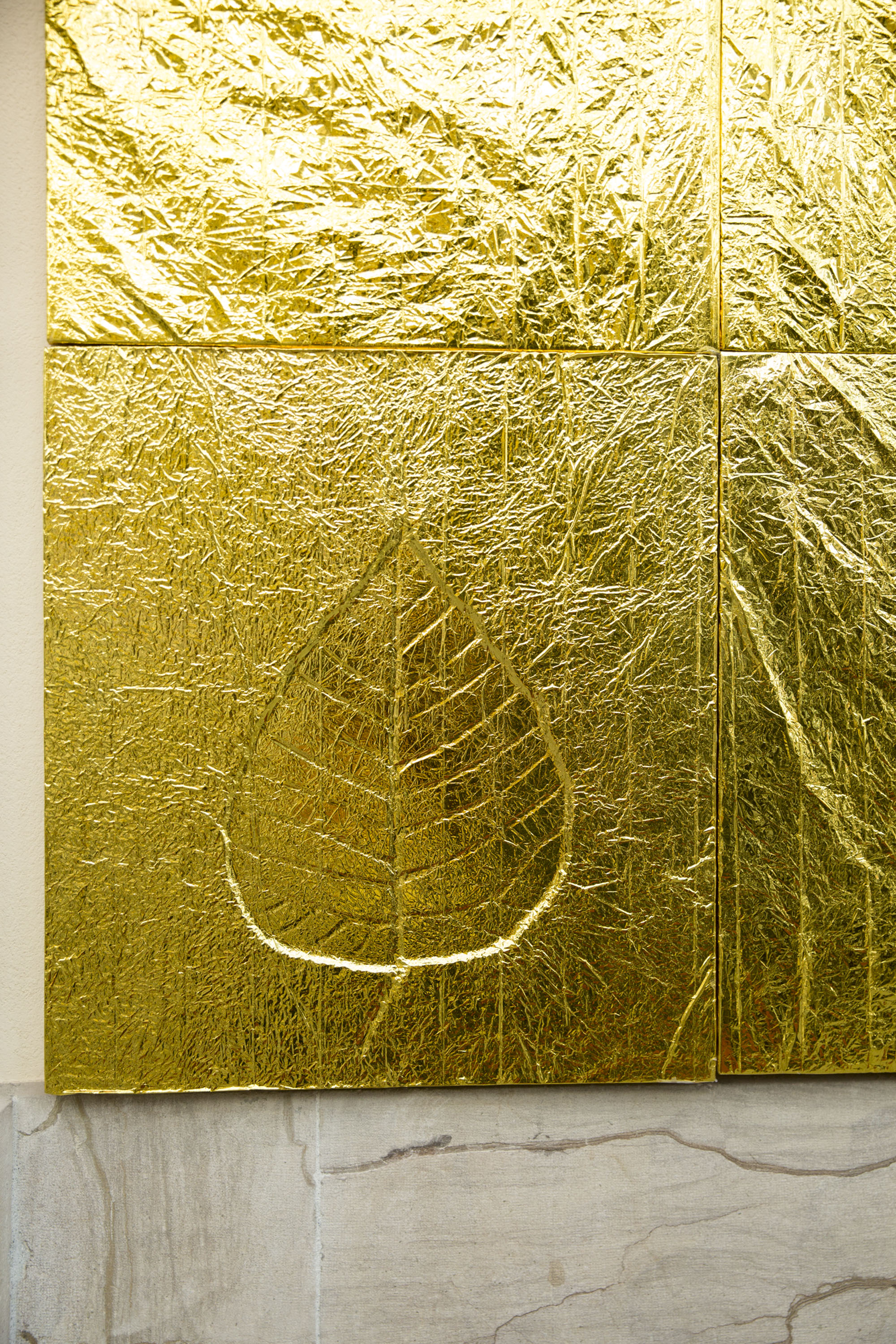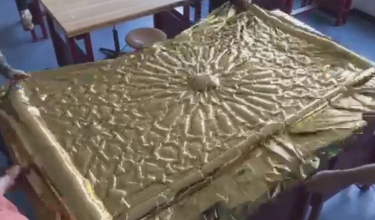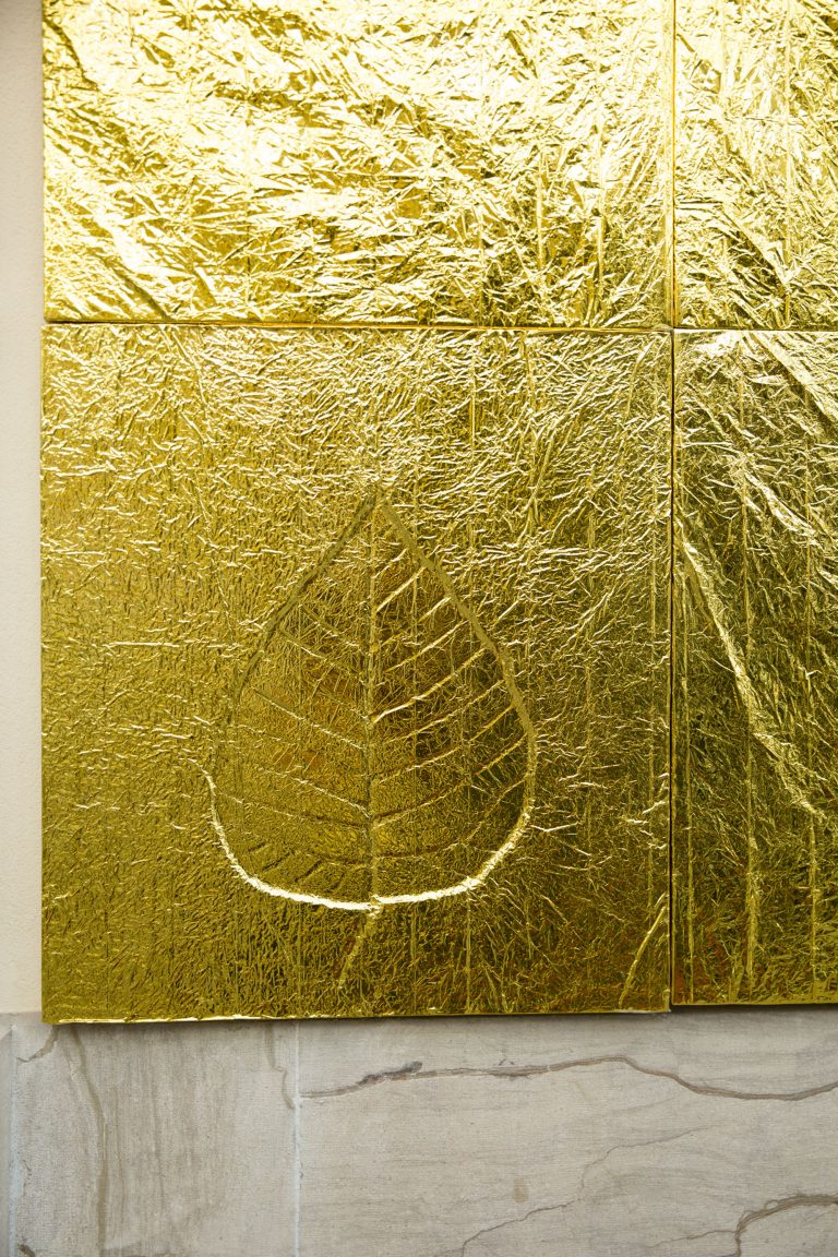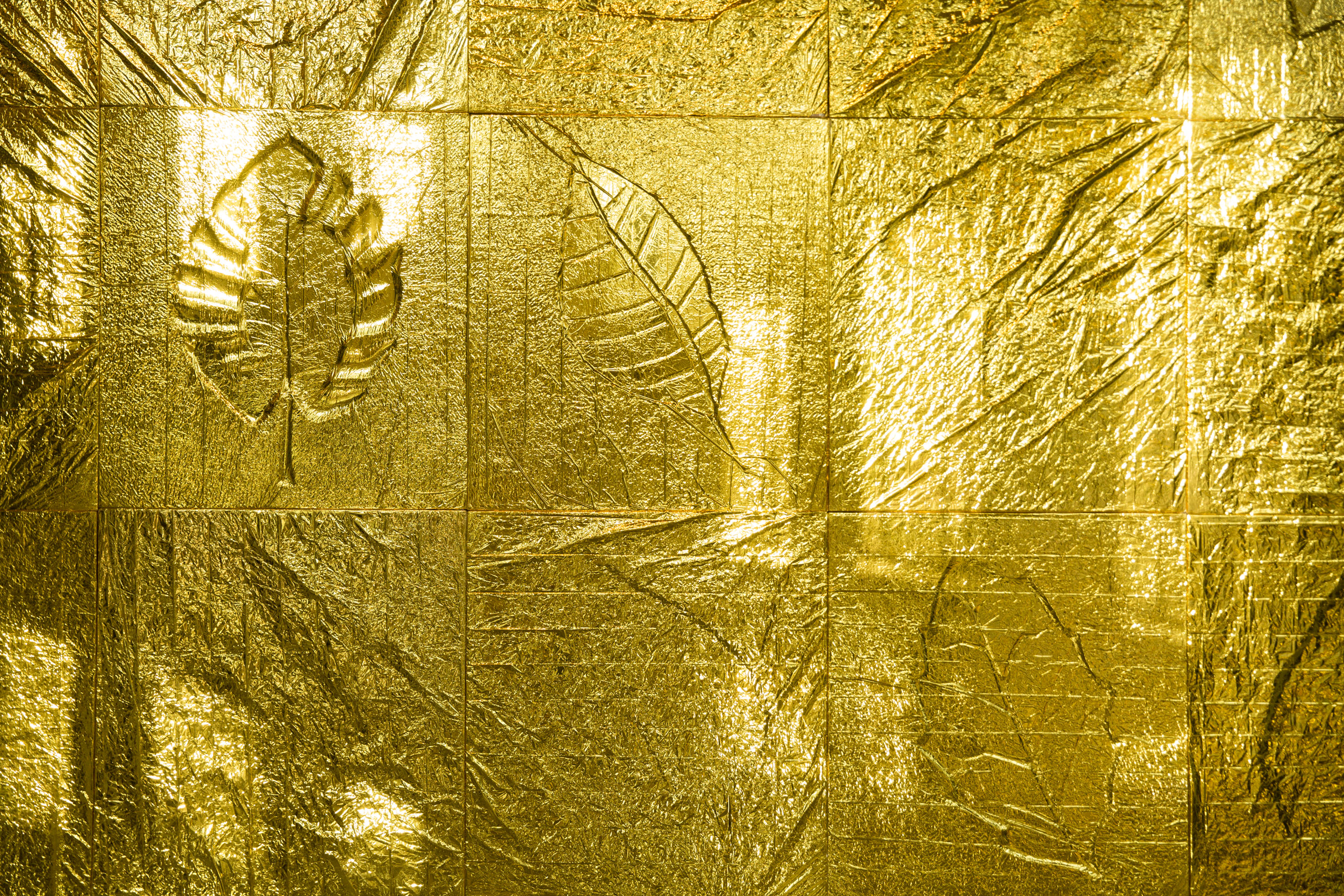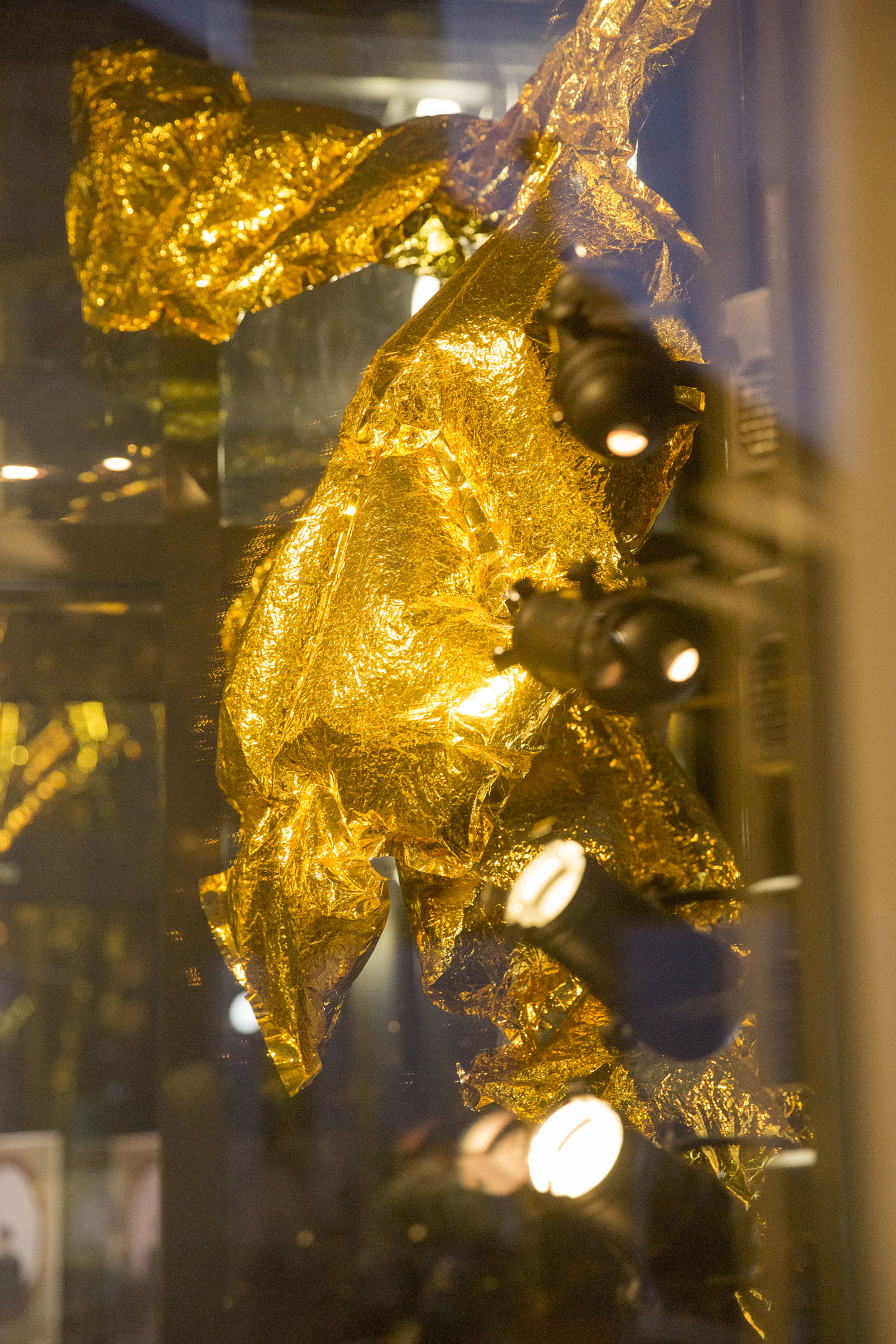 Création du décor pour le Théâtre Le Reflet de Vevey sur le thème végétal et gonflable avec des couvertures de survie dorées.