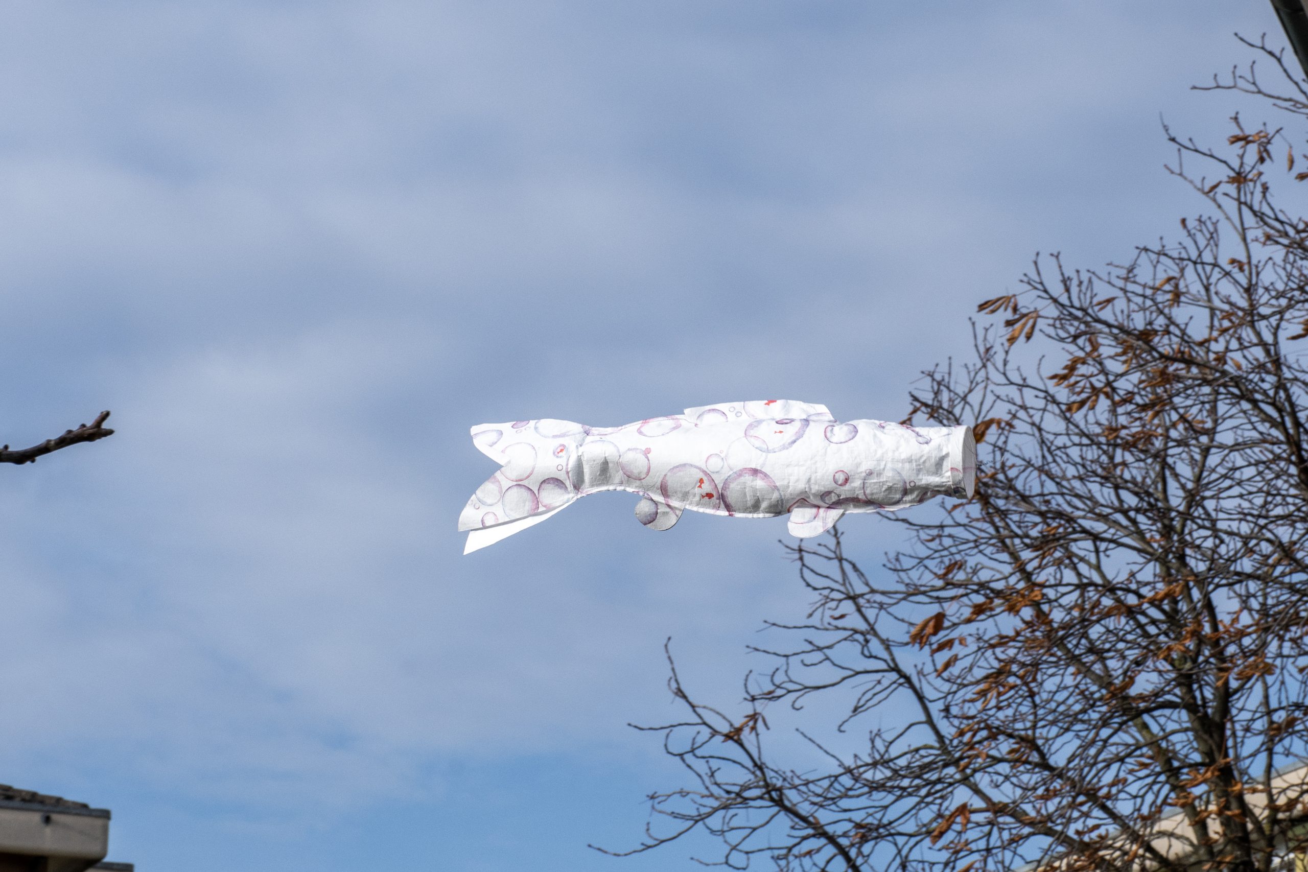 Ces carpes japonaises volantes comme des cerfs-volants, de 2,5 mètres de long, réalisées par les élèves, seront exposées, au vent, dans la cour de l’école d’Epenex à cette occasion.